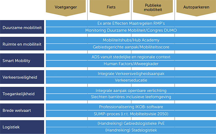 Publieke mobiliteit is in de afgelopen jaren uitgegroeid tot een volwaardig thema binnen het KpVV-programma. Het voorheen aparte thema Deelmobiliteit is hierin geïntegreerd. De maatschappelijke opgaven op het gebied van mobiliteit en openbare ruimte zijn in het KpVV-jaarprogramma 2026 vertaald naar kennisvragen en activiteiten. De verdere uitwerking van het jaarprogramma vindt plaats in het vierde kwartaal van 2025 en in twee tranches in 2026.